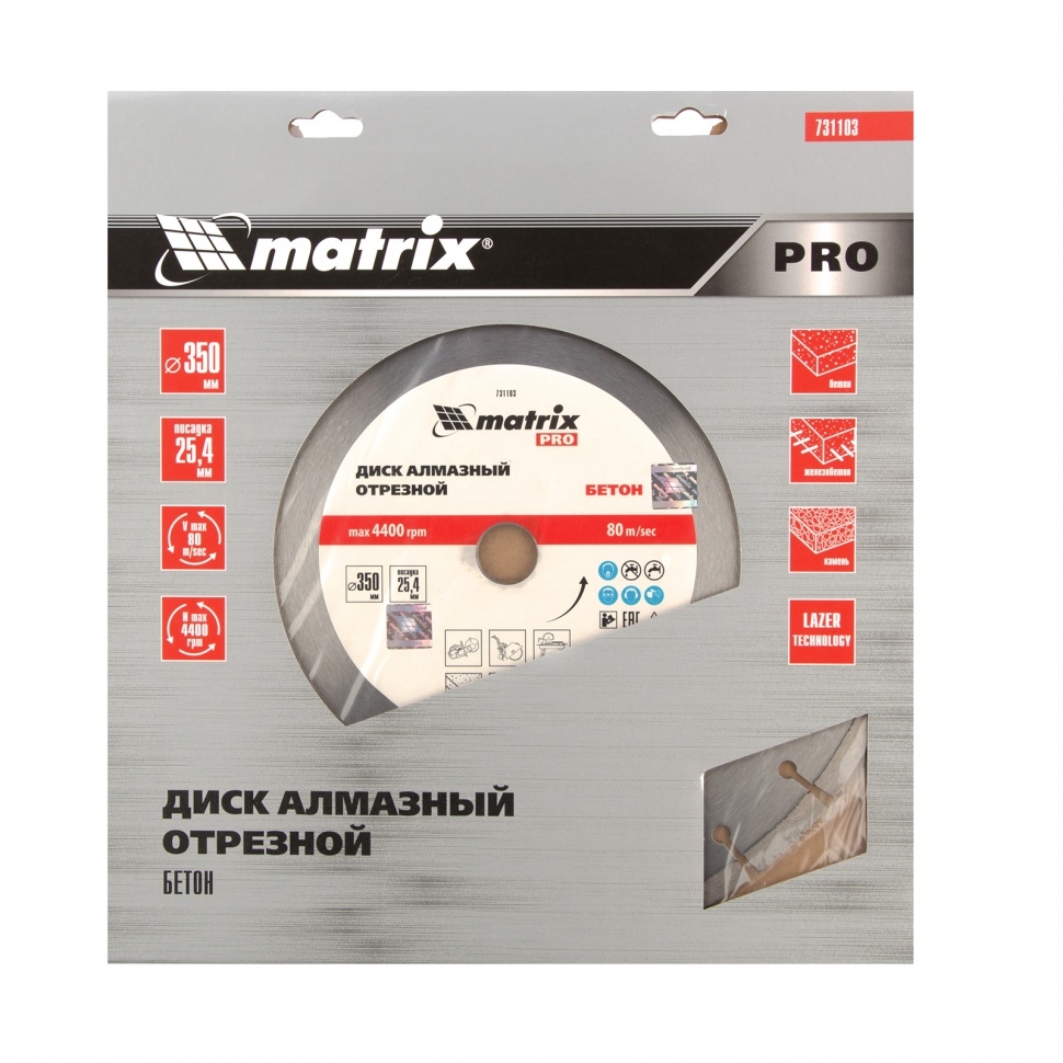 Диск алмазный Железобетон сухое/мокрое резание 350х25,4 мм PRO Matrix