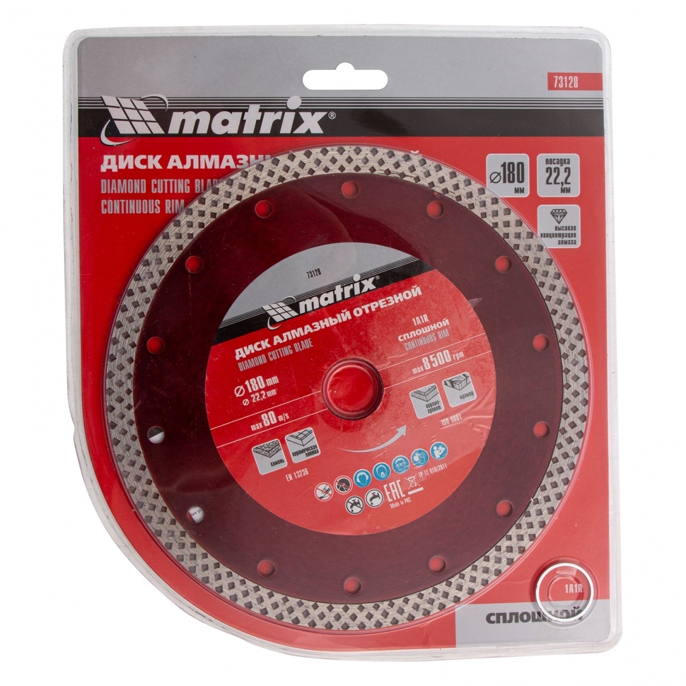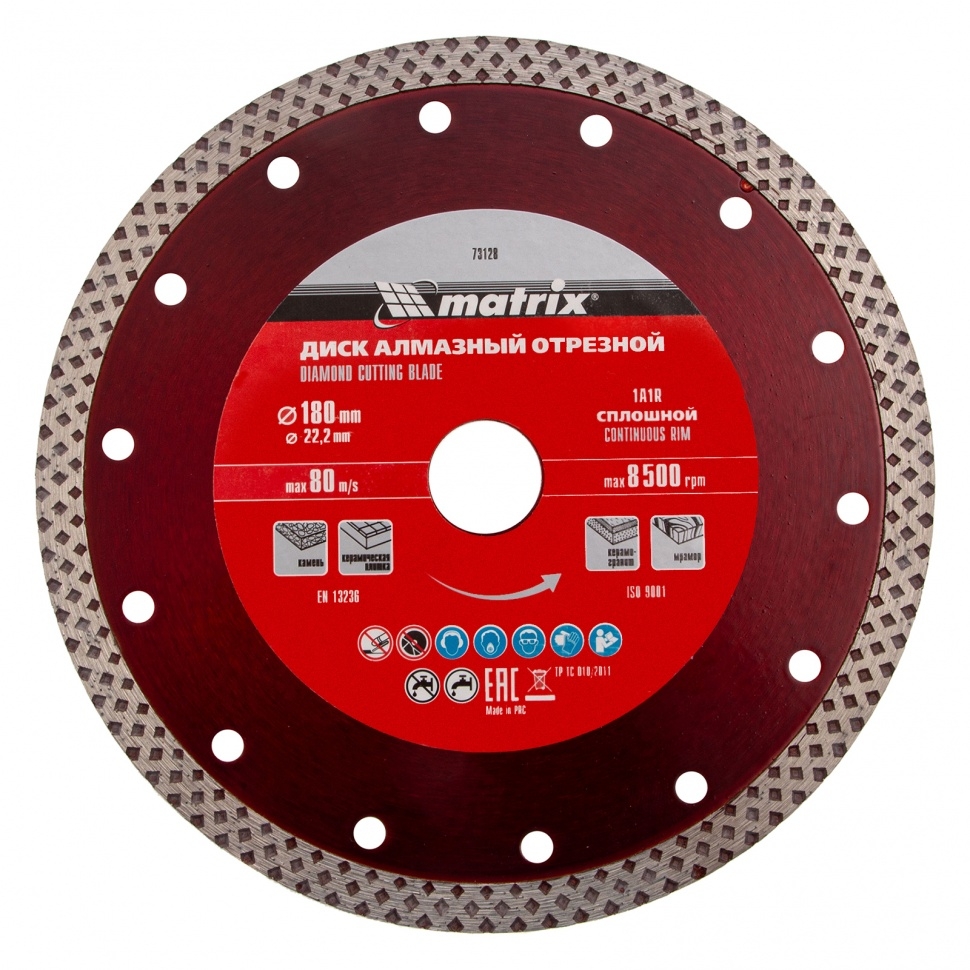 Диск отрезной алмазный сплошной сухое/мокрое резание 180х22,2 мм Matrix