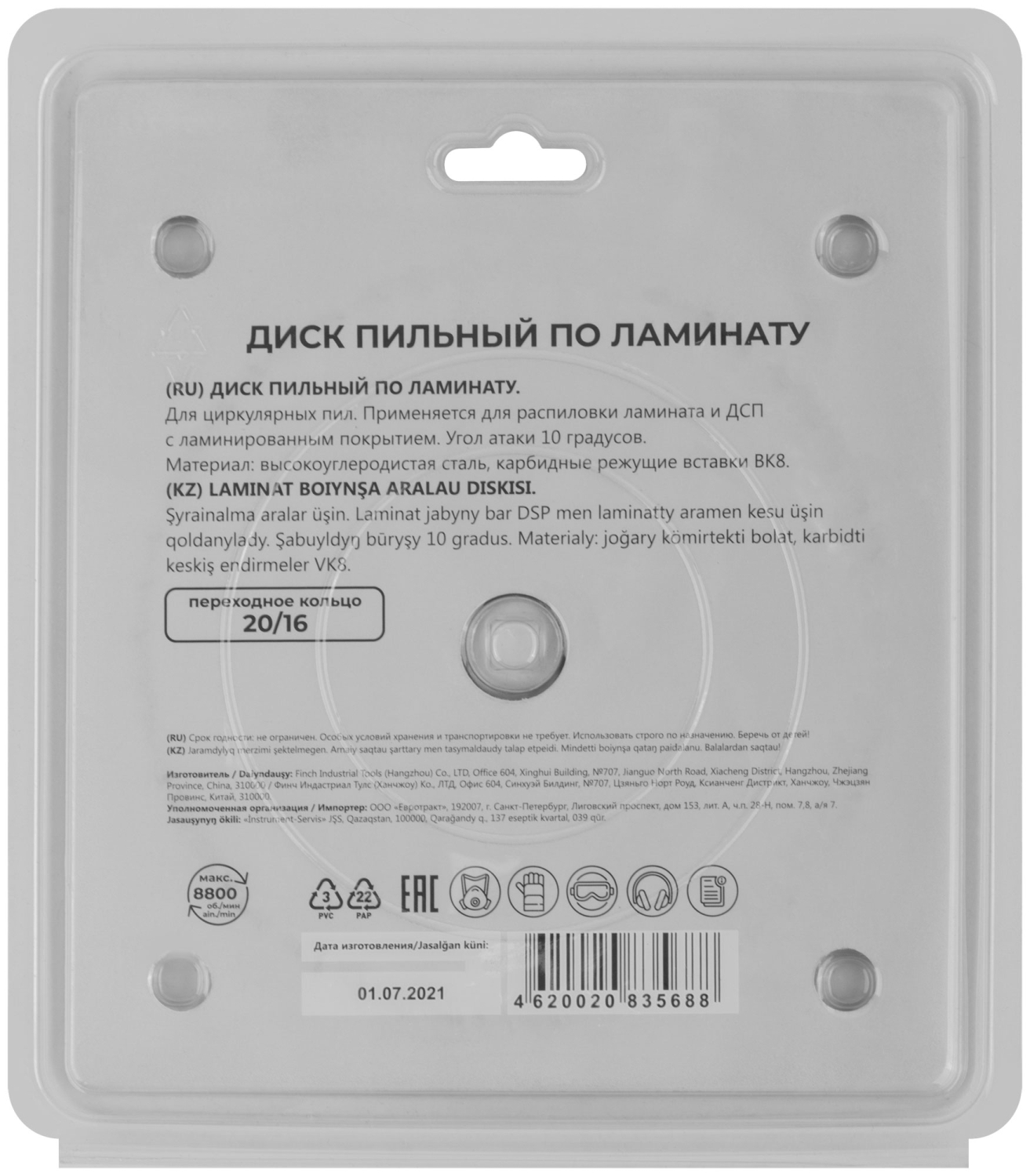 Диск пильный для циркуляр.пил по ламинату 160х20х48Т+кольцо 20/16 мм