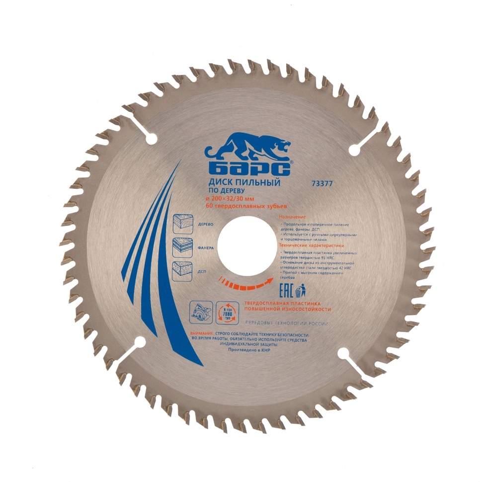 Диск пильный по дереву 200х32 мм 60 зубьев + кольцо 32/30 мм Барс
