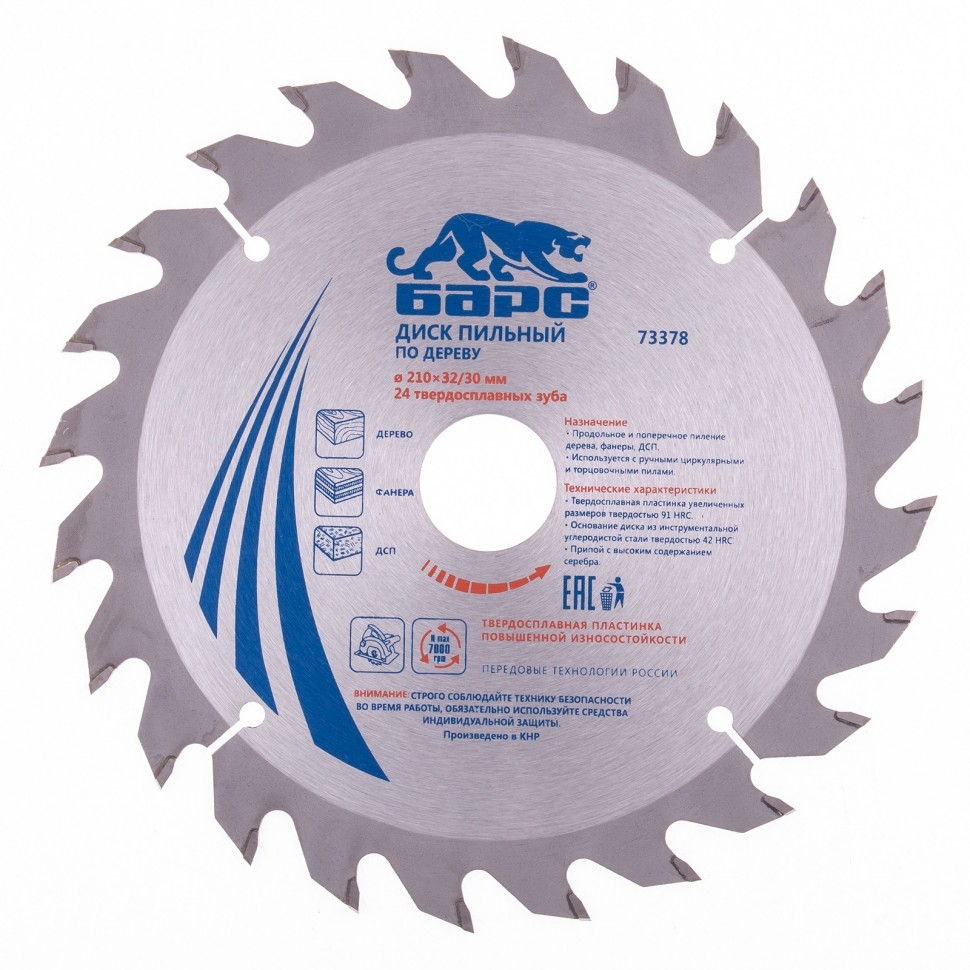 | Диск пильный по дереву 216х32 мм 24 зуба + кольцо 32/30 мм Барс | 73381 | 1 шт. |