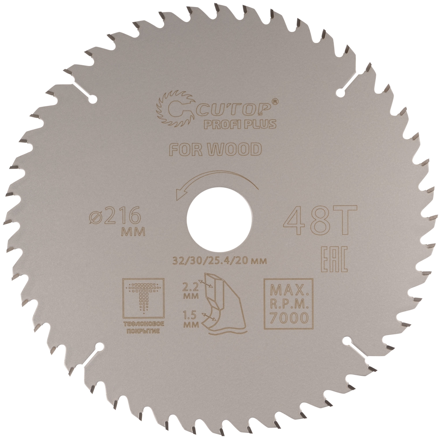 Диск пильный по дереву с тефл.покр.48Т CUTOP Profi Plus 216х1,5/2,2х32/30/25,4/20 мм