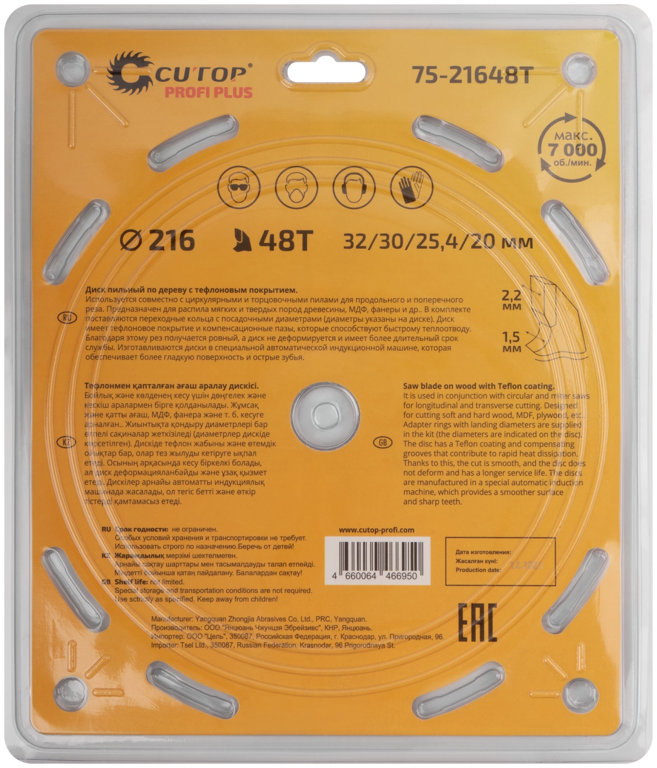 | Диск пильный по дереву с тефл.покр.48Т CUTOP Profi Plus 210х1,5/2,2х32/30/25,4/20 мм | 75-21048Т | 1 шт. |