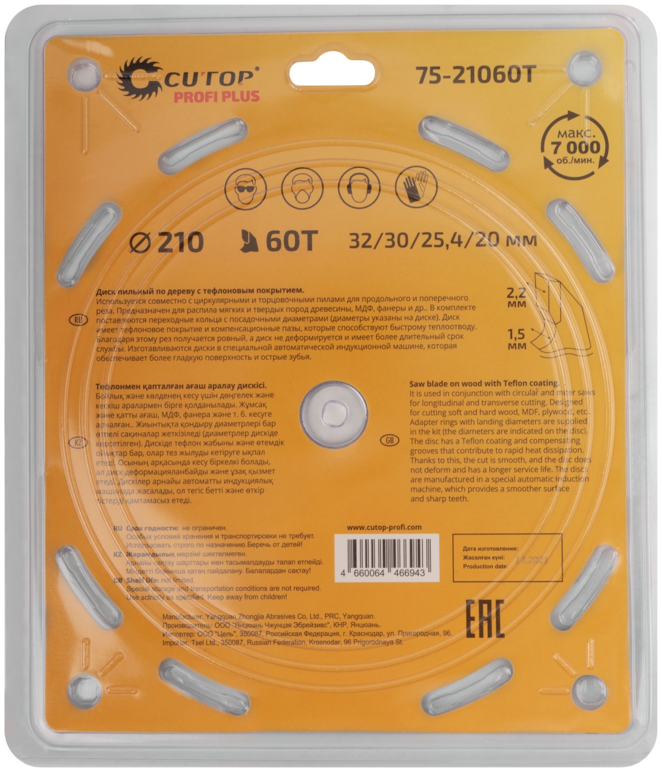 | Диск пильный по дереву с тефл.покр.60Т CUTOP Profi Plus 216х1,5/2,2х32/30/25,4/20 мм | 75-21660Т | 1 шт. |