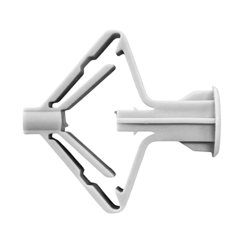При закручивании шурупа дюбель раскрывается, образуя надежный упор с обратной стороны гипсокартона. Широкий бортик предотвращает повреждение поверхности и распределяет нагрузку. Подходит для гипсокартона (ГКЛ, ГВЛ), ДСП, фанеры и других листовых материалов. Разводные перегородки и продольные ребра обеспечивают устойчивость к нагрузкам.