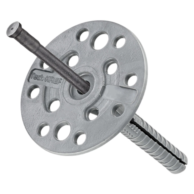 Распорная зона увеличена до 100 мм, что позволяет закреплять дюбели в пористых или пустотелых материалах. Специальные насечки, шипы и зубцы с обратной ориентацией на стержне обеспечивают повышенную прочность на вытягивание и срез. Усиленные ребра жесткости в месте соединения шляпки с стержнем усиливают общую прочность крепежа.