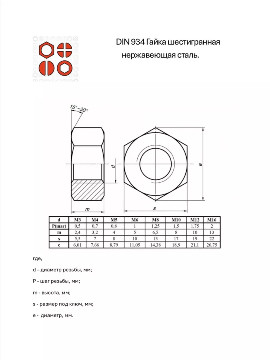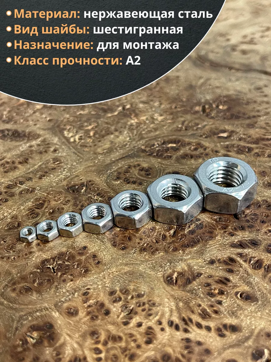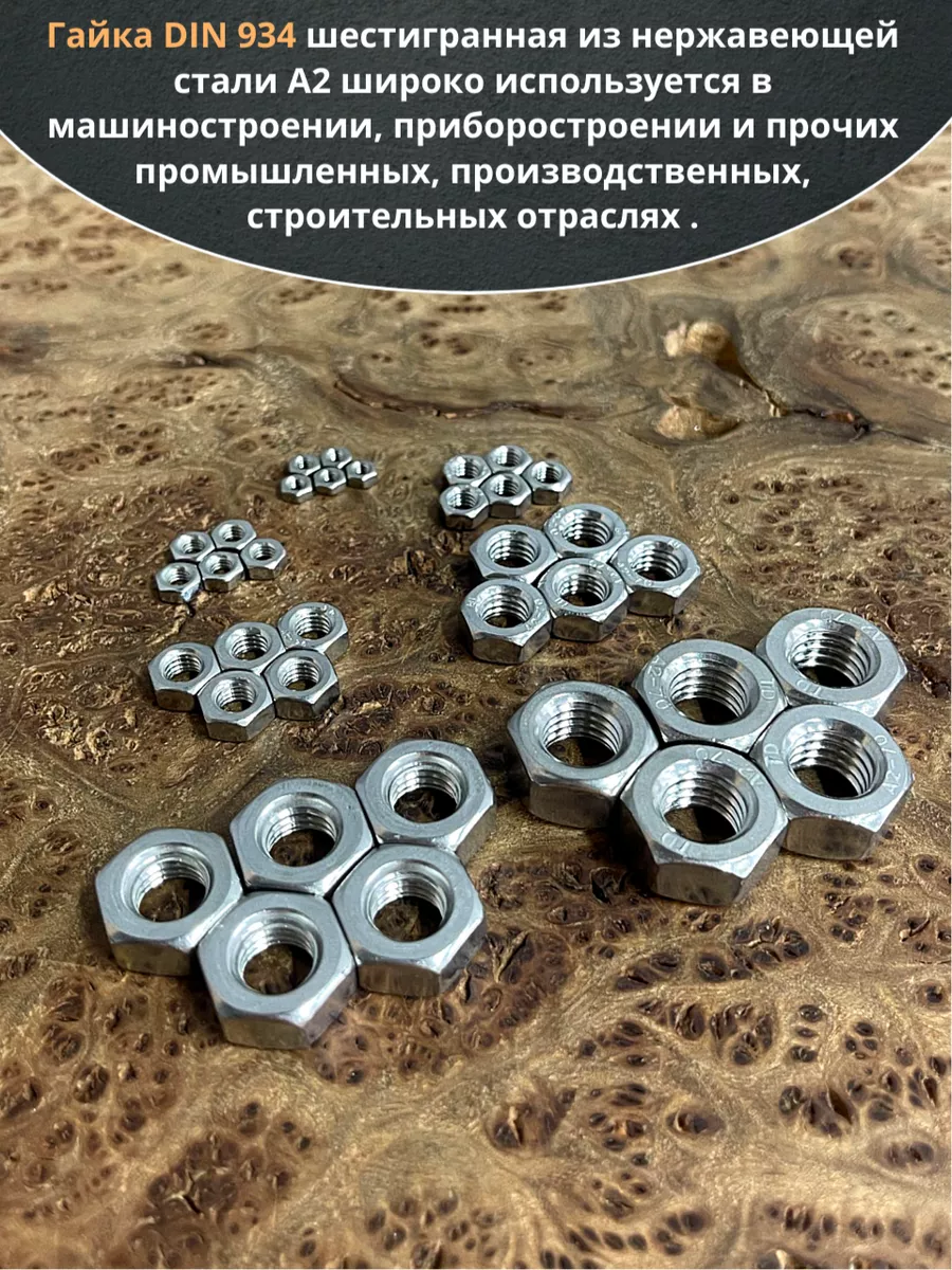 | Гайка нержавеющая М3,4,5,6,8,10,12 DIN934 (по 50 шт) | 11614 | 1 шт. |