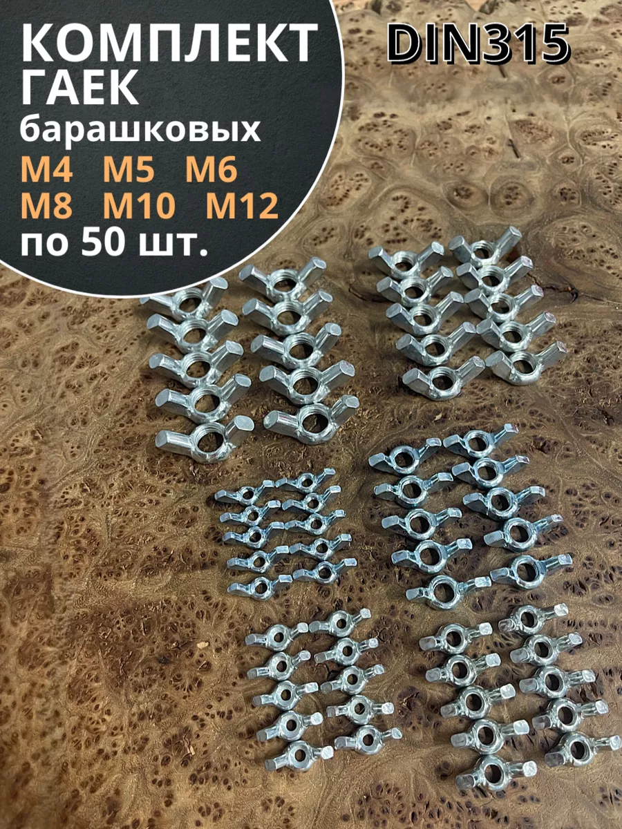 | Гайка барашковая М4,5,6,8,10,12 ОЦ DIN315 (по 50 шт.) | 11621 | 1 шт. |