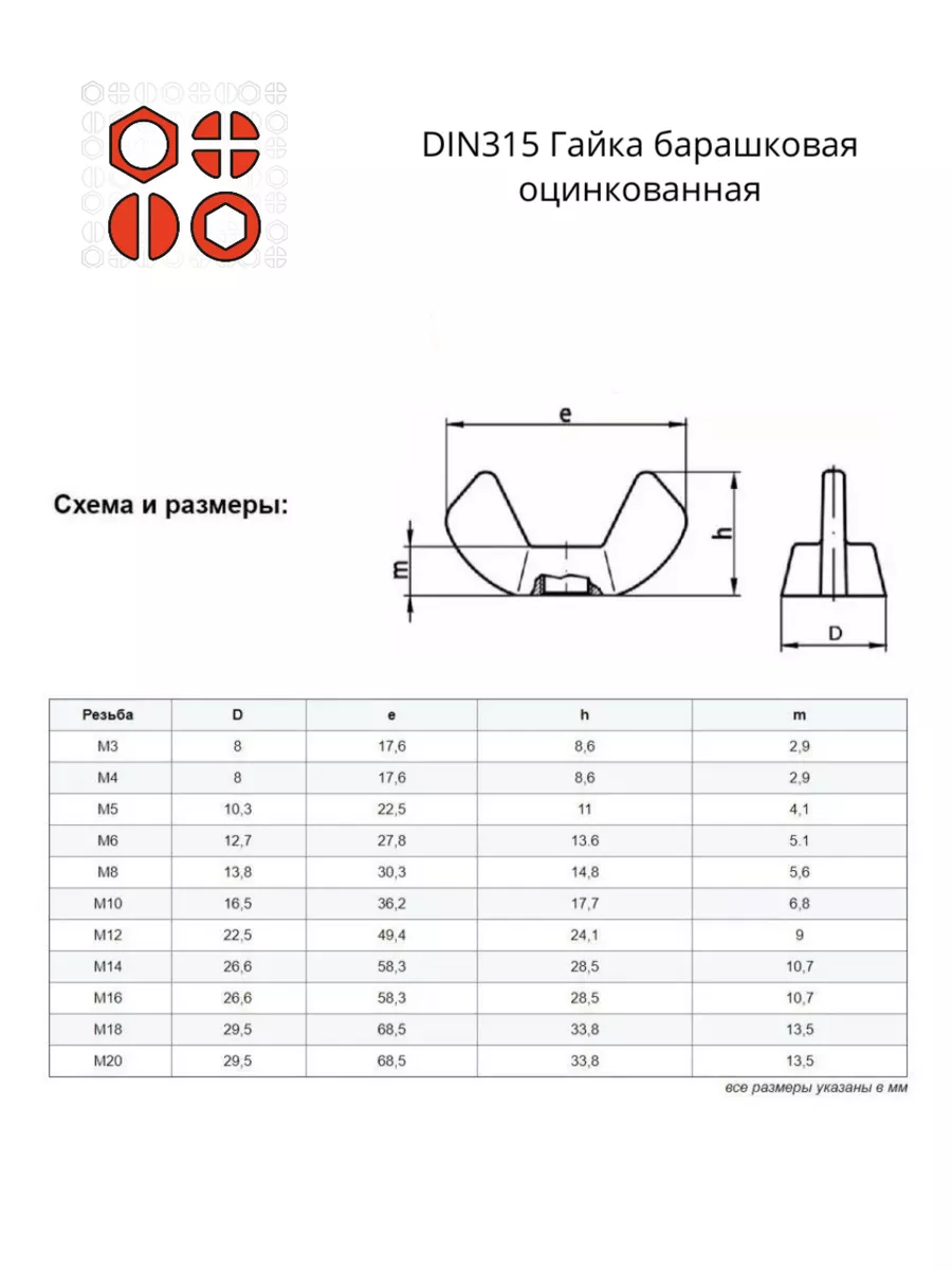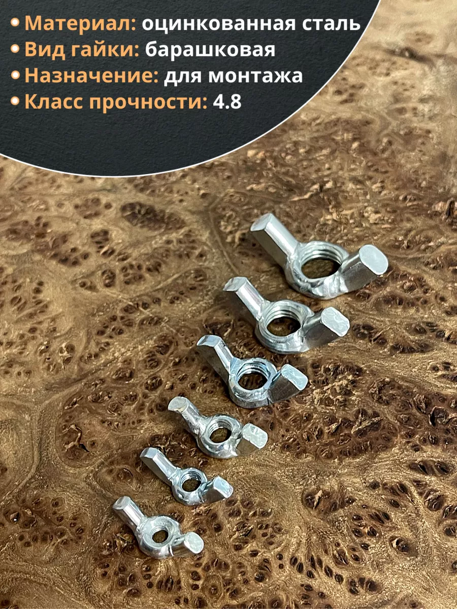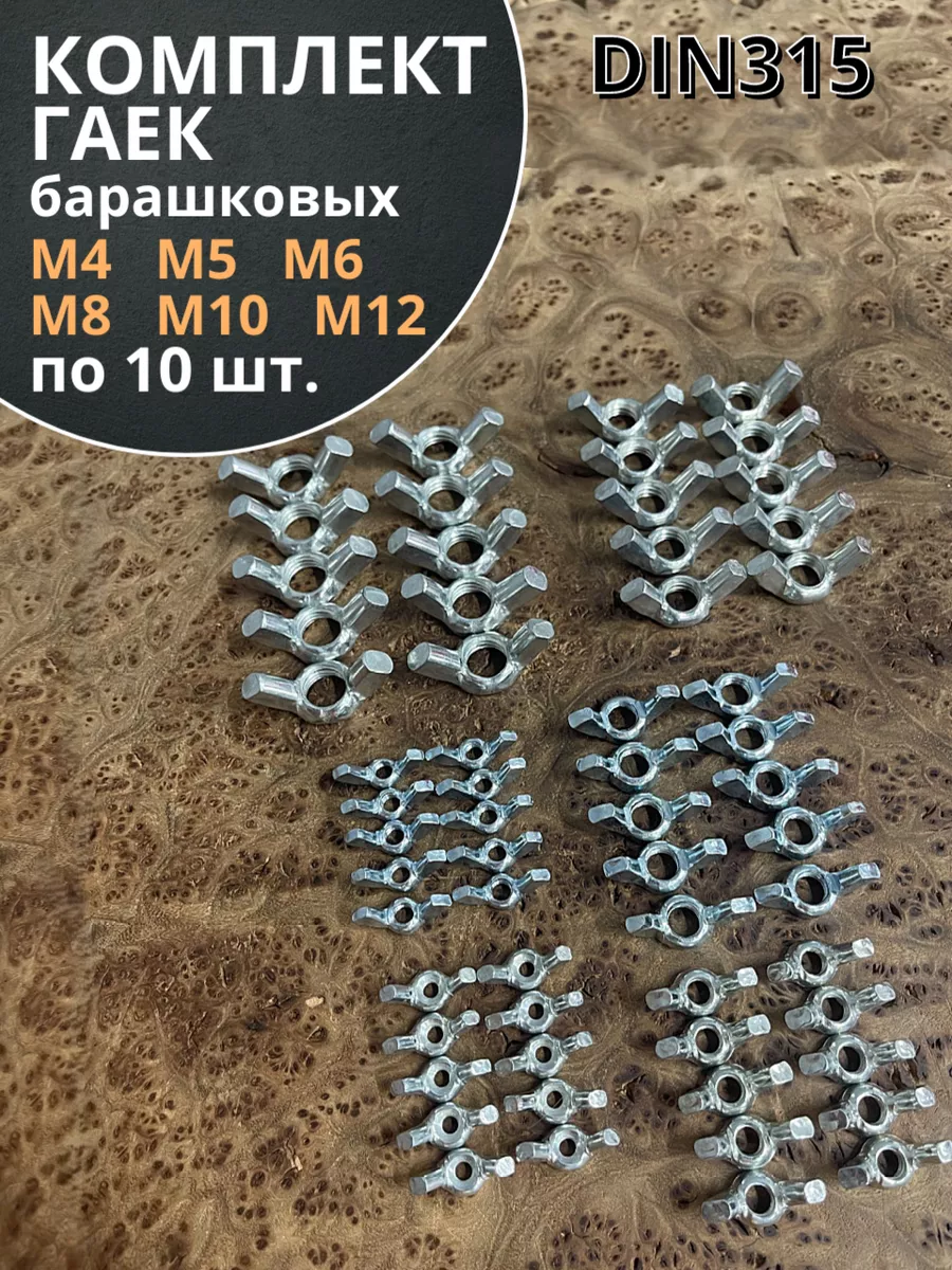 | Гайка барашковая М4,5,6,8,10,12 ОЦ DIN315 (по 10 шт.) | 11607 | 1 шт. |