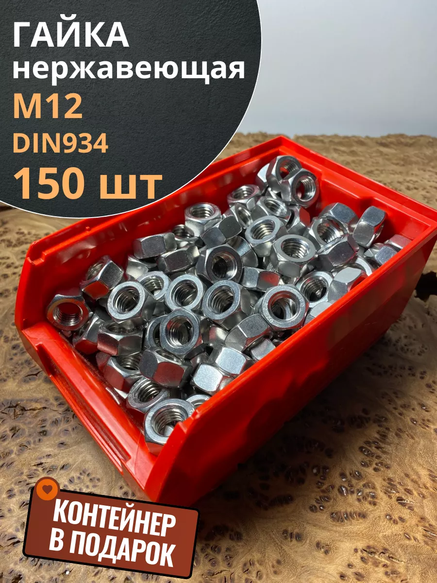 Гайка Нержавеющая М12 DIN 934 А2 150 шт. с контейнером