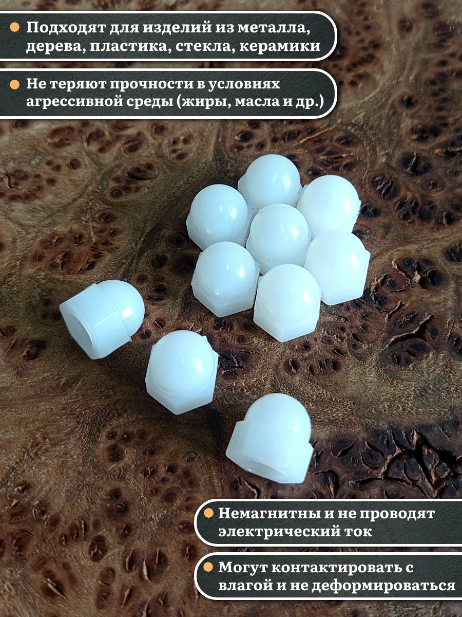 Гайка колпачковая DIN 1587 полиамидная (пластиковая) широко используется в строительстве, машиностроении, приборостроении, сборке габаритной техники и быту. Простая и надежная конструкция делает крепеж универсальным.