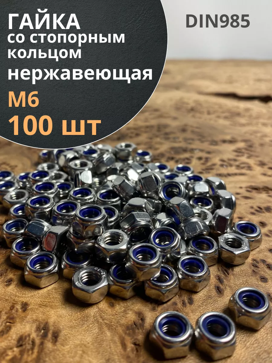 | Гайка со стоп кольцом М6 нержавеющая, DIN985, 100 шт. | 11215 | 1 шт. |