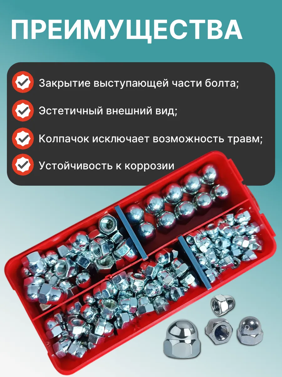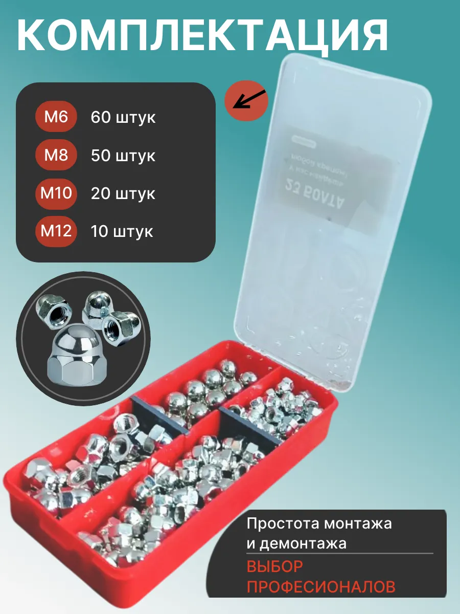 Гайки колпачковые ОЦ М6,8,10,12 в органайзере НАБОР 1