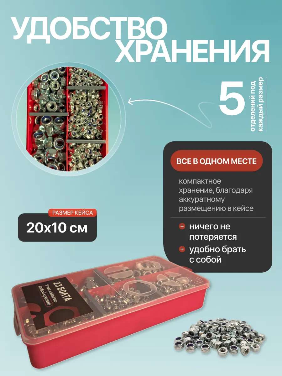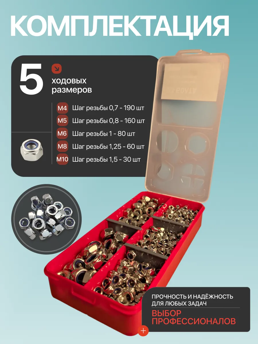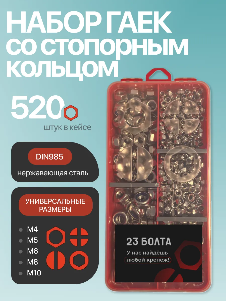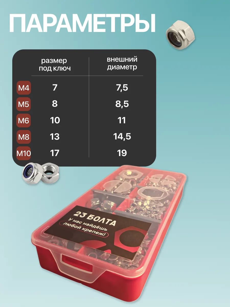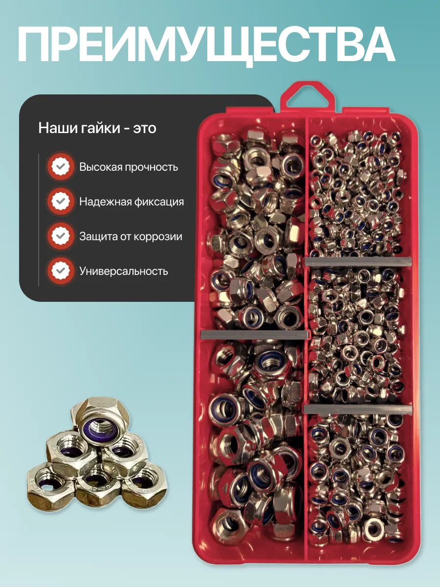 Гайки стопорные нержавейка М4,5,6,8,10 органайзер НАБОР 1