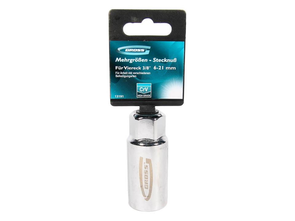 Головка торцевая многоразмерная 6-21 мм под квадрат 3/8 хромир CrV Gross