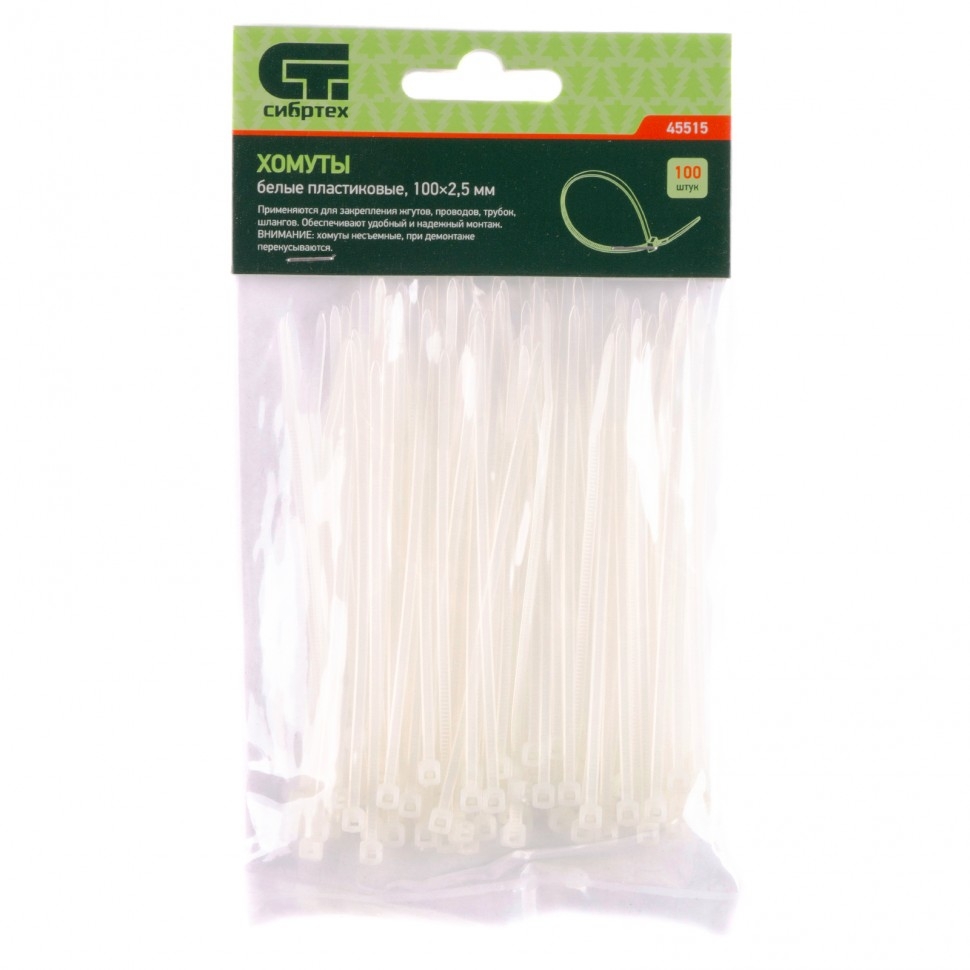 | Хомуты пластиковые белые 150х2,5 мм 100 шт. Сибртех | 45519 | 1 шт. |
