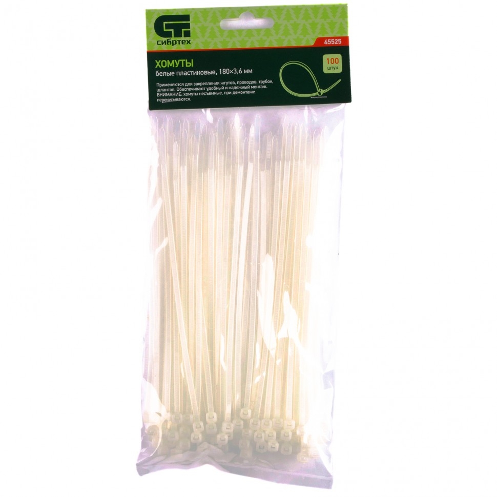 | Хомуты пластиковые белые 300х3,6 мм 100 шт. Сибртех | 45531 | 1 шт. |