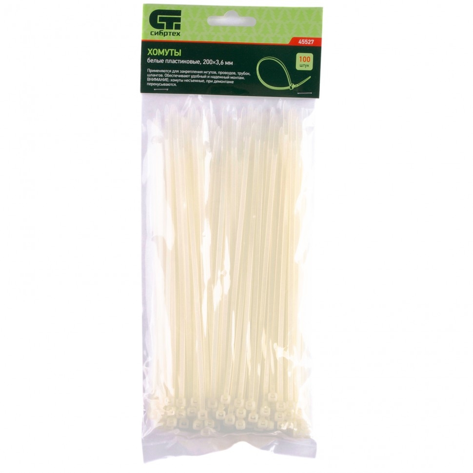 | Хомуты пластиковые белые 180х3,6 мм 100 шт. Сибртех | 45525 | 1 шт. |