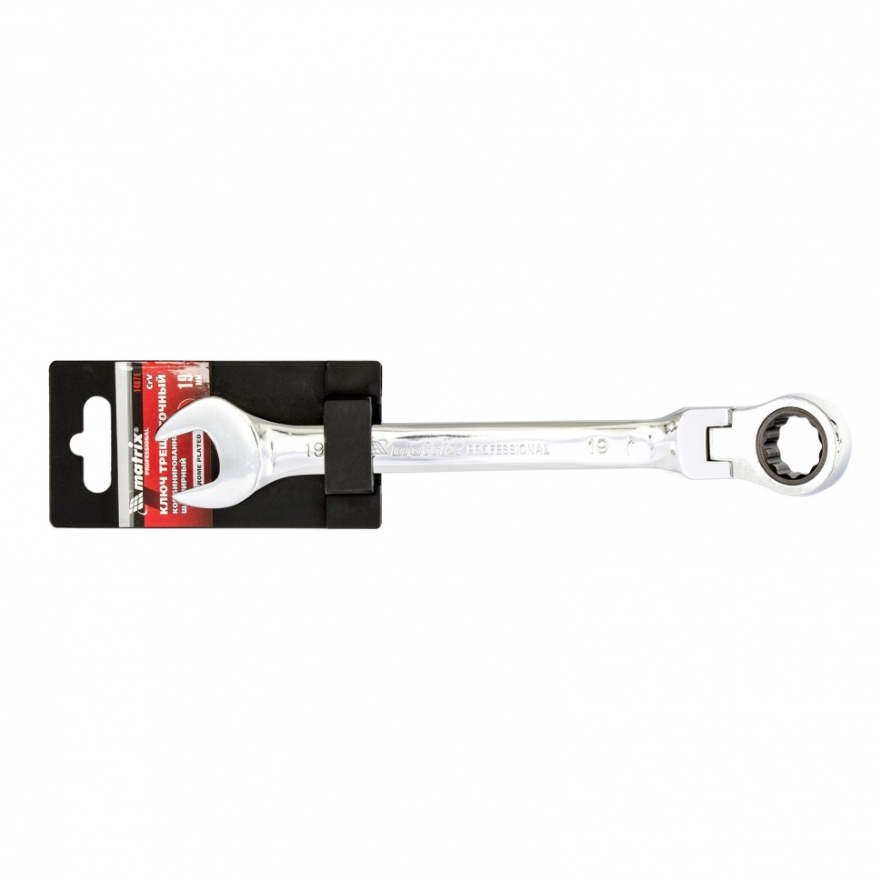 Ключ комбинированный трещоточный шарнирный зеркальный хром 19 мм CrV Matrix