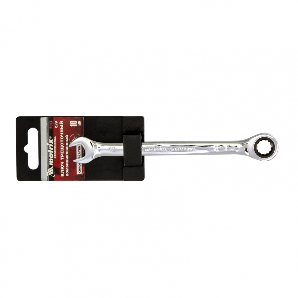 Ключ комбинированный трещоточный зеркальный хром 10 мм CrV Matrix