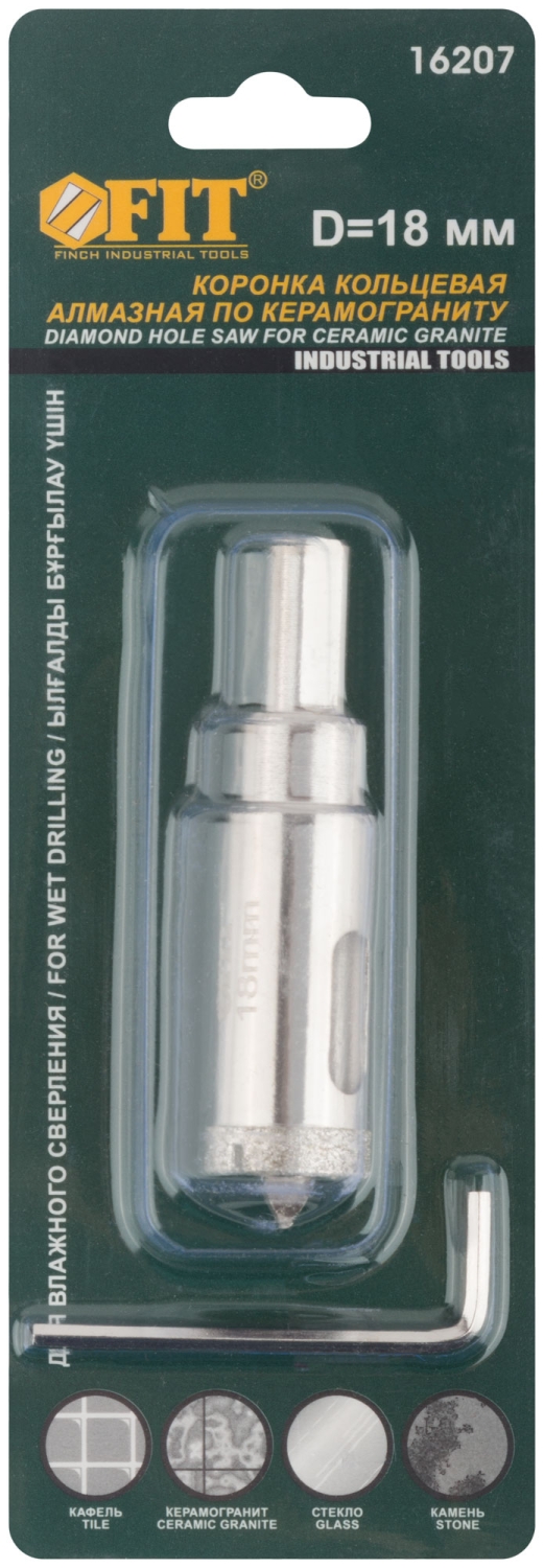 | Коронка по керамограниту, камню и кафелю кольцев с центров сверлом 18х67 мм | 16207 | 1 шт. |