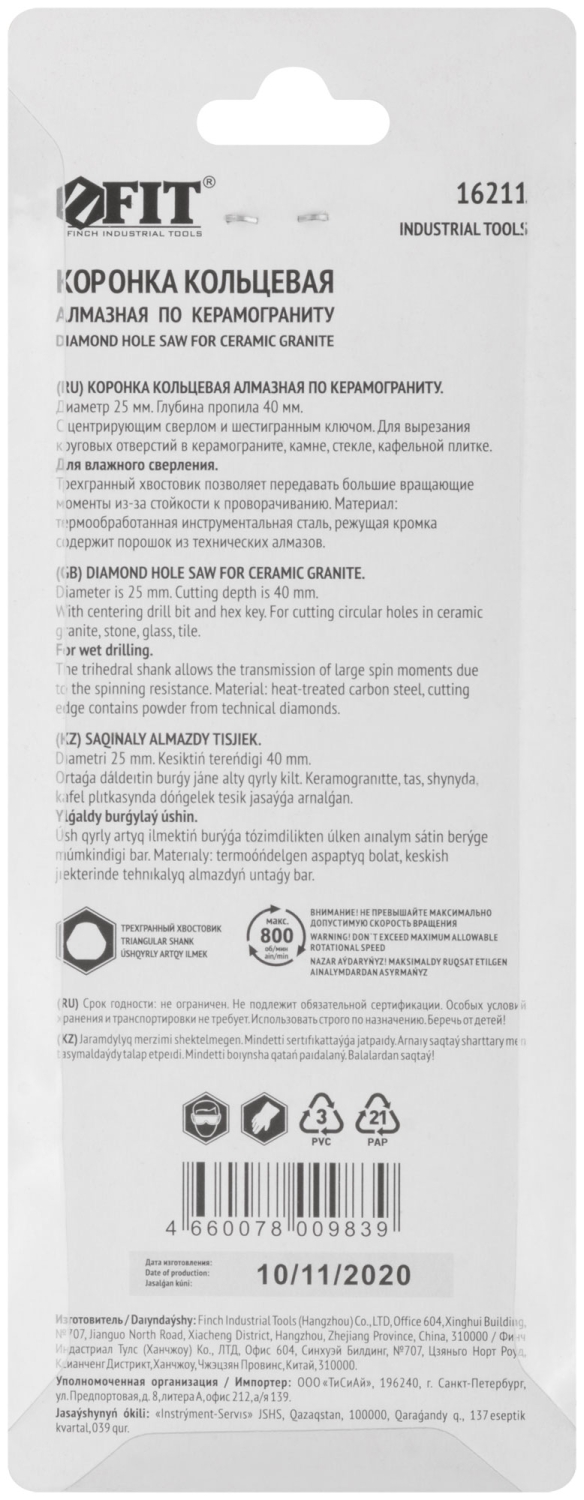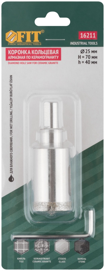 | Коронка по керамограниту, камню и кафелю кольцев с центров сверлом 25х67 мм | 16211 | 1 шт. |
