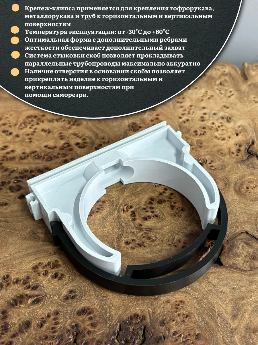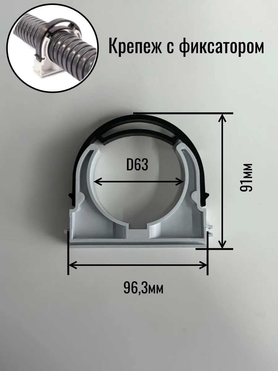 Крепеж клипса для трубы гофры с фиксатором d 63 мм