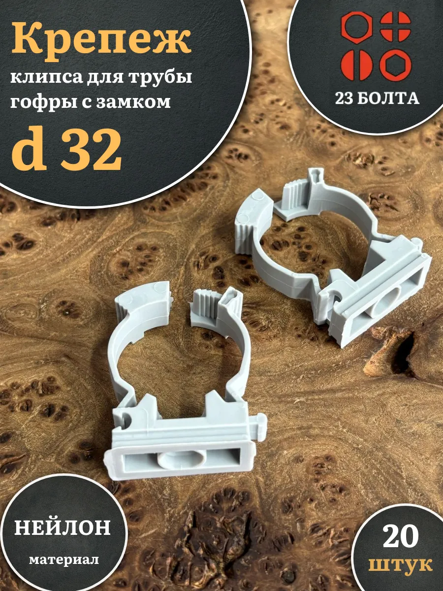 | Крепеж клипса для трубы гофры с замком d 32 мм, 20 шт. | 17-1230ф20 | 1 шт. |