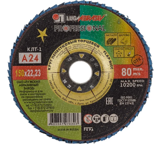 | Круг лепестковый плоский 150х22 мм A 24 КЛТ1 Луга | D91015022140630 | 1 шт. |