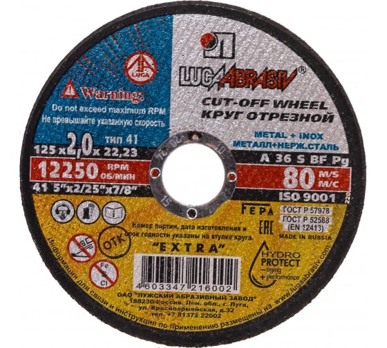 | Круг отрезной мет. 150х2,0х22 мм A 36 S BF 80 Луга | D11001502220000 | 1 шт. |