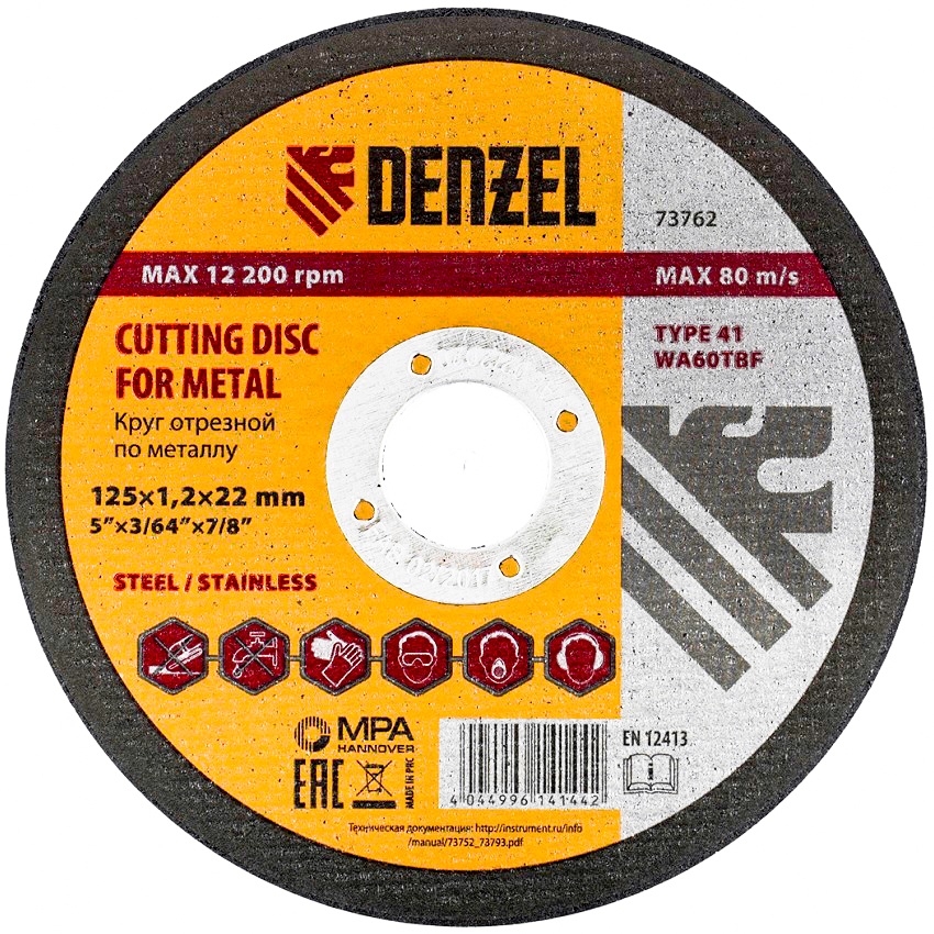 | Круг отрезной по металлу 125х1,6х22,2 мм WA60TBF Denzel | 73763 | 1 шт. |