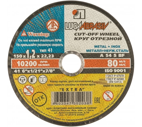 | Круг отрезной по металлу 150х1,6х22 мм Луга | 73658 | 1 шт. |