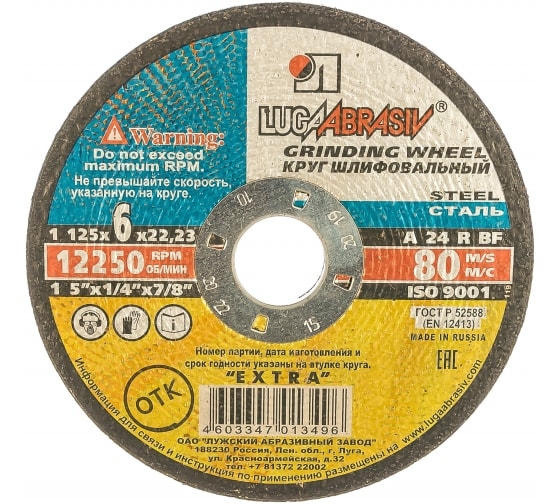 Круг зачистной металлический 125х6х22 мм A 24 R BF Луга