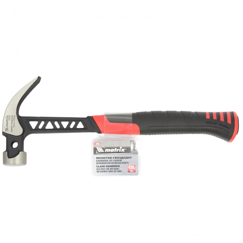 Молоток-гвоздодер, цельноков.боек с магнитом, двухкомпон.обрезин.рук. 450 гр. PRO Matrix