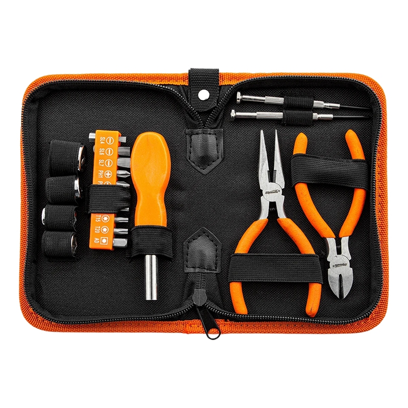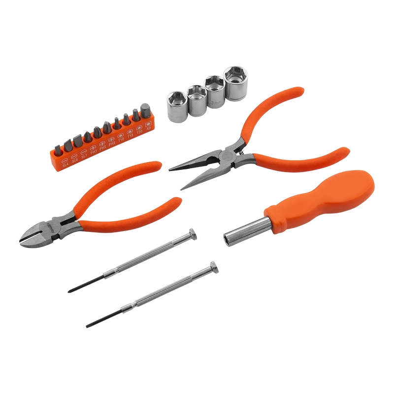 Отвертка, бокорезы и длинногубцы имеют пластиковые рукоятки для удобства захвата.