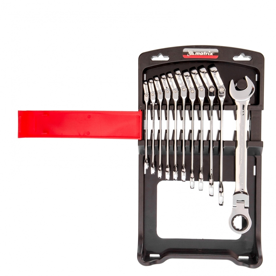 Набор ключей комбинированных трещоточных шарнирных 11 шт Matrix