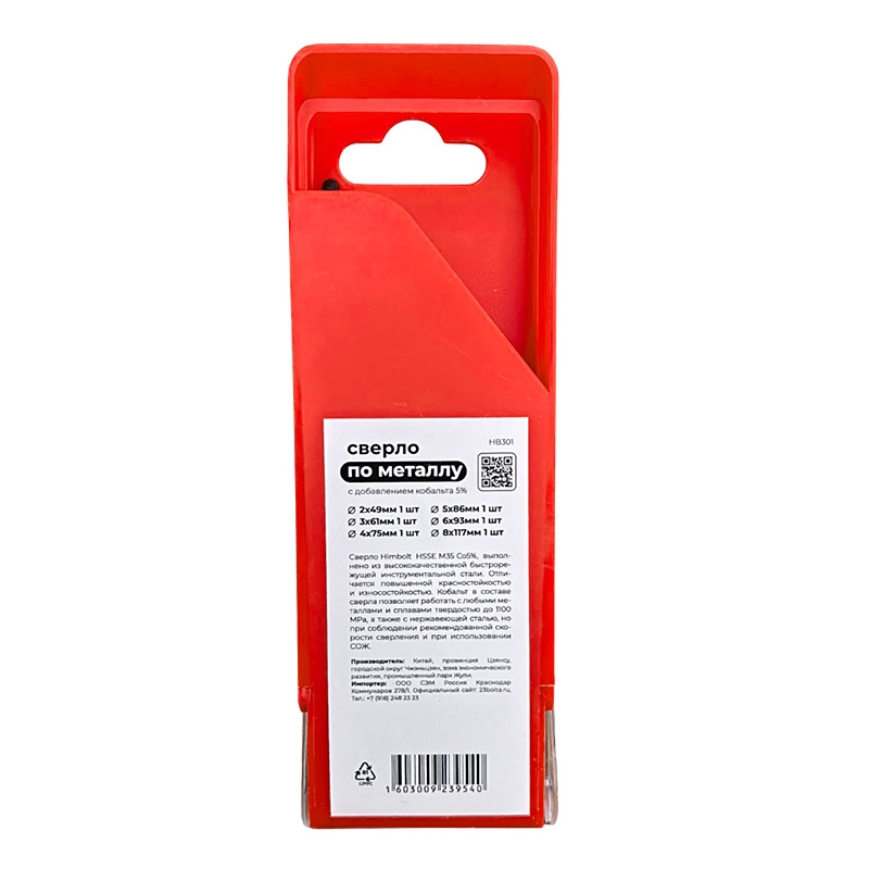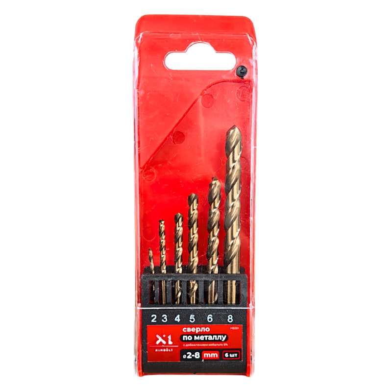 Набор сверл по металлу с кобальтом 5% P6M5K5 2-3-4-5-6-8 мм HIMBOLT 6 шт.пластиковый бокс