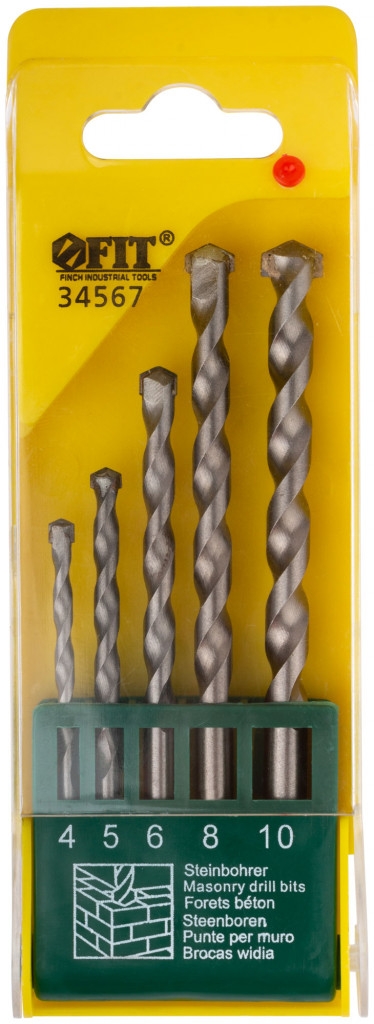 Набор сверл победитовых ударных, цилиндрич.хвостовик 5шт. (4-5-6-8-10 мм)