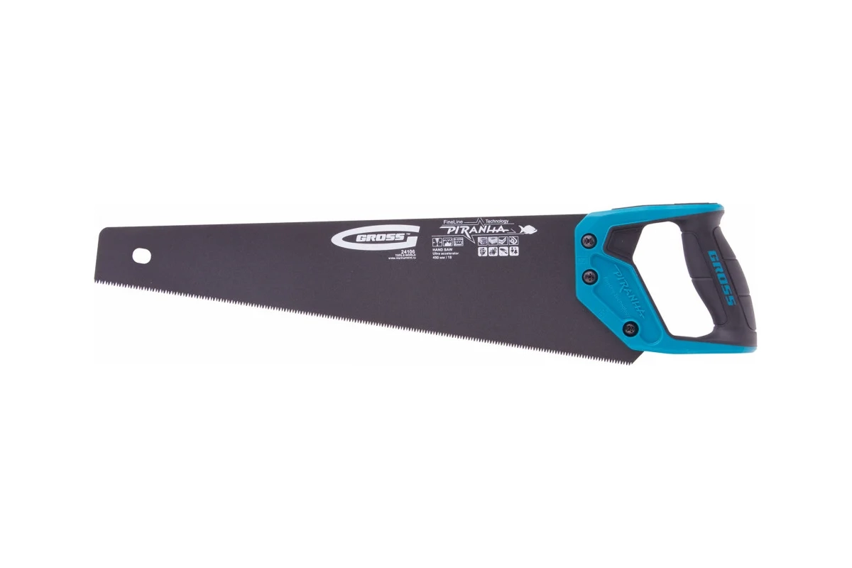 Ножовка по дереву PIRANHA, двухкомп.рук., каленый 3D-зуб, тефл.покр.полотна 11-12 TPI 450мм Gross