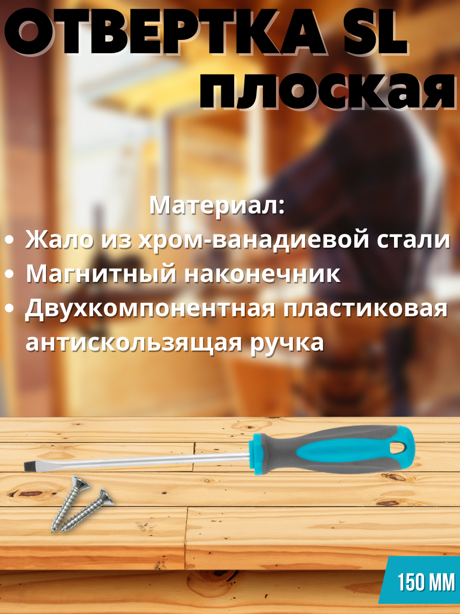 Отвертка, CrV сталь, прорезинененная ручка, SL6х150 мм