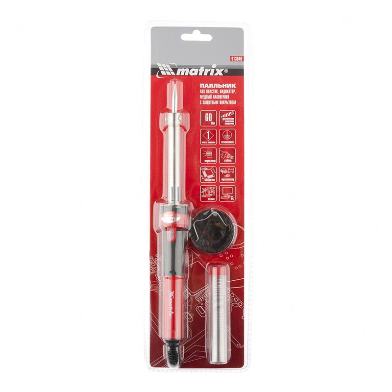 Паяльник, пластик.ABS класс защиты 1, индикатор, мед.наконечник с долговеч.защит.покр., 60W Matrix