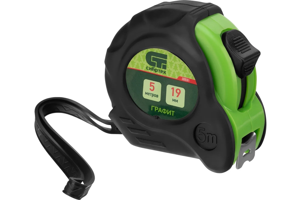 Рулетка Графит обрезиненный корпус амортизатор 5м х19 мм Сибртех