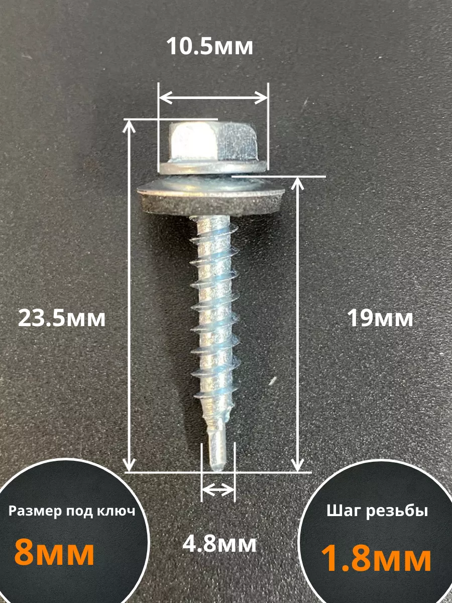 Саморез кровельный 4,8х19 мм с шайбой (под сверло),ОЦ 50шт.