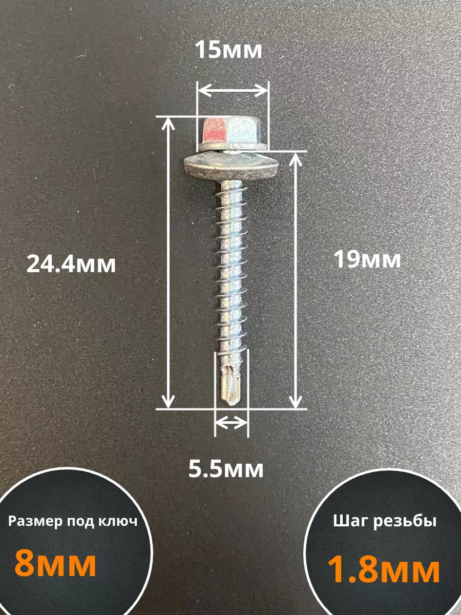 | Саморез кровельный 5.5х19 мм с шайбой (под сверло),ОЦ 1000шт. | B03005501932A07ф1000 | 1 шт. |