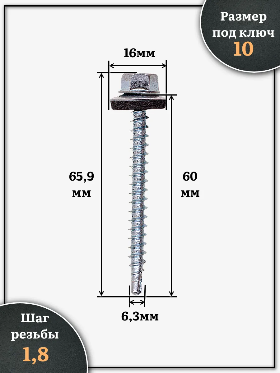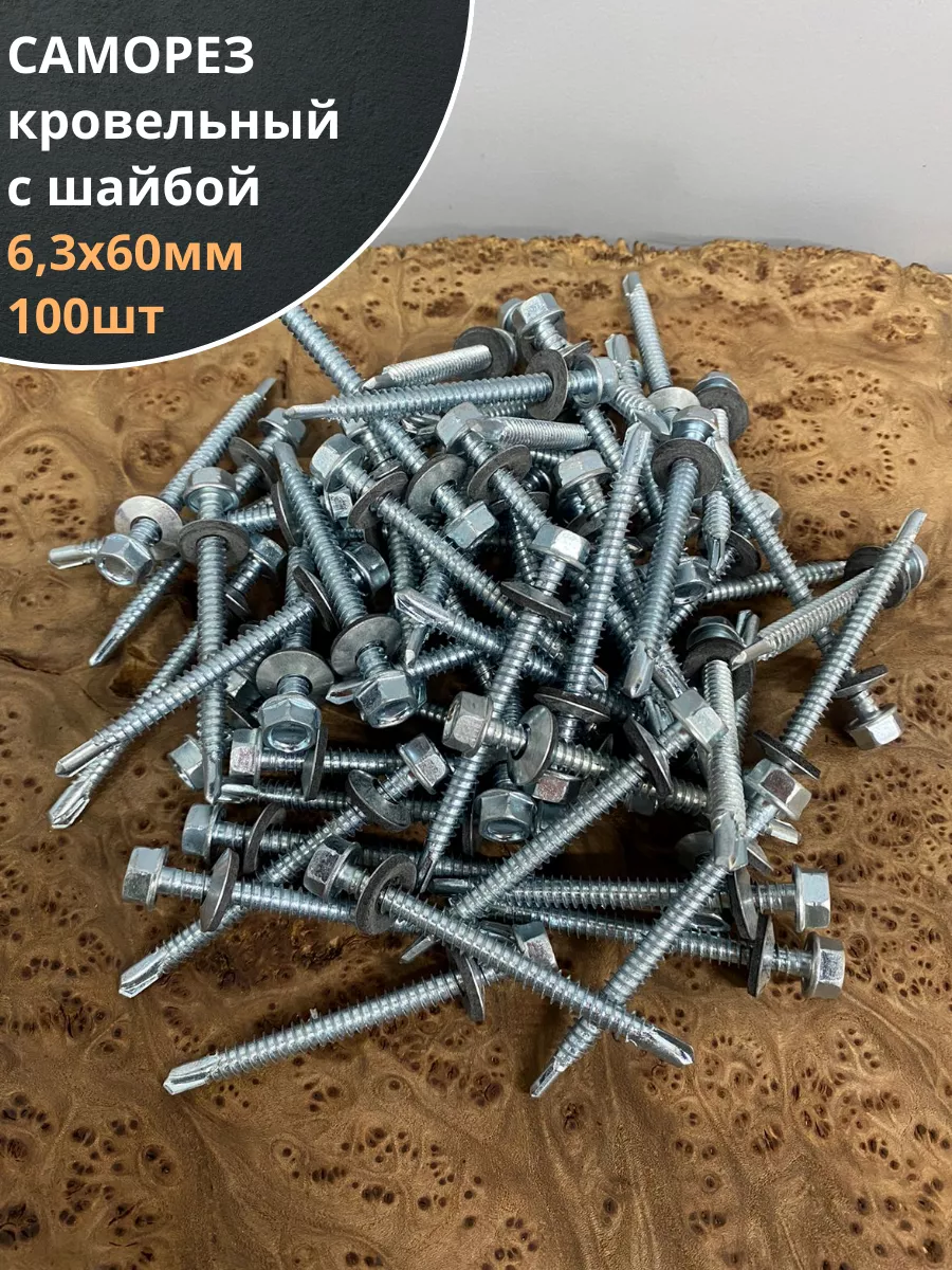 | Саморез кровельный 6,3х60 мм с шайбой (под сверло),ОЦ 100шт | 11423 | 1 шт. |