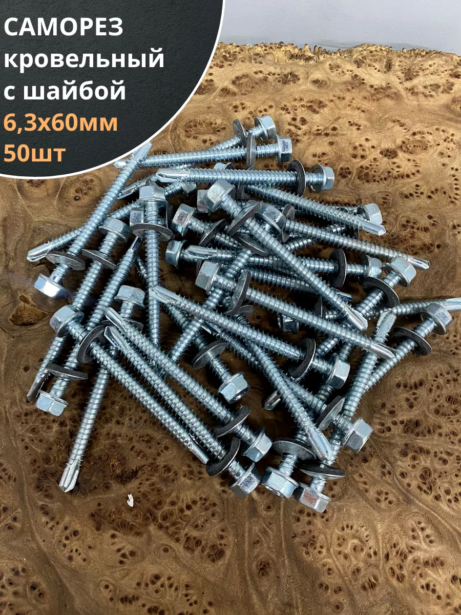 | Саморез кровельный 6,3х60 мм с шайбой (под сверло),ОЦ 50шт. | 11415 | 1 шт. |