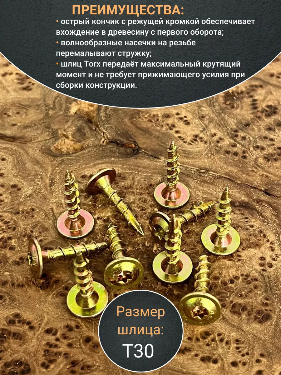 - шлиц Torx на головке позволяет прижать скрепляемые элементы с нужным усилием
