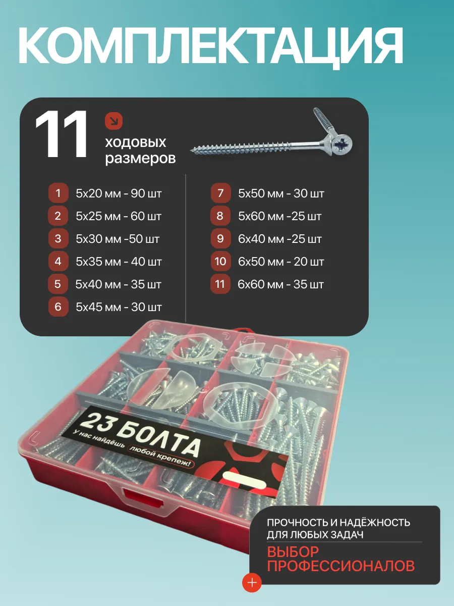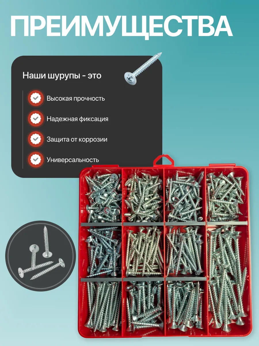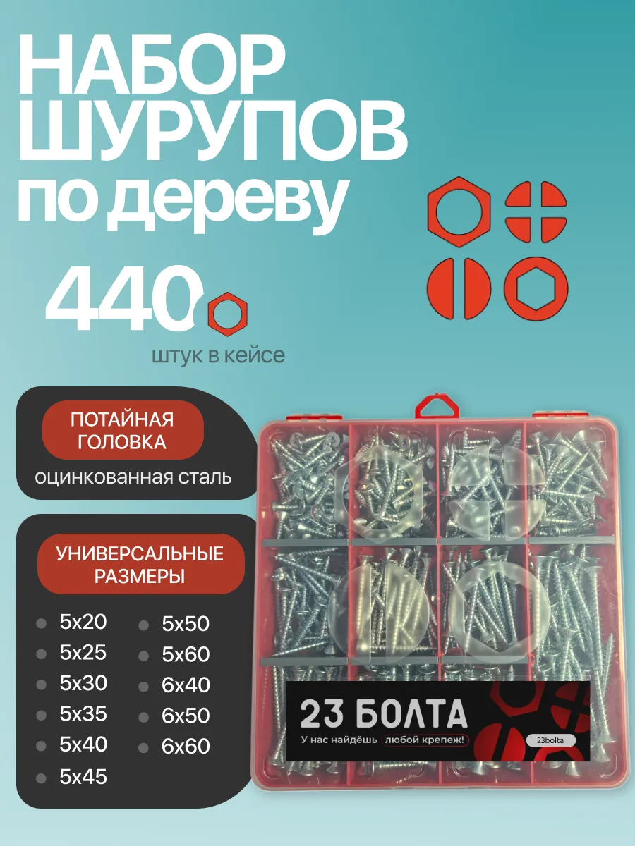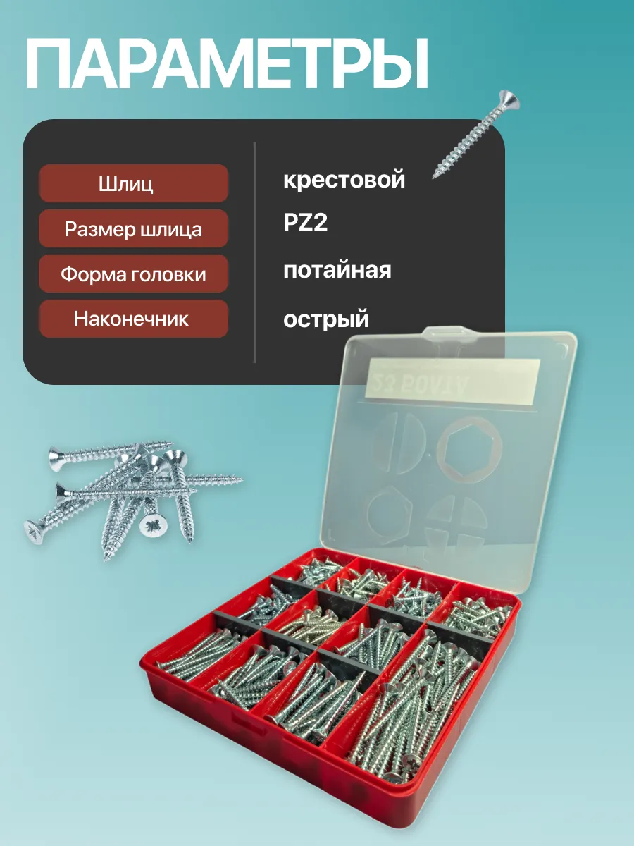 Саморезы потай по дереву БЦ М5 М6 в органайзере НАБОР 1