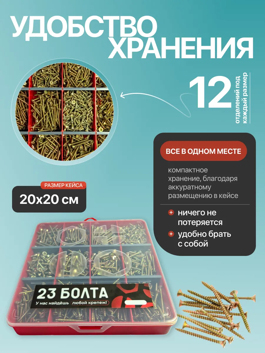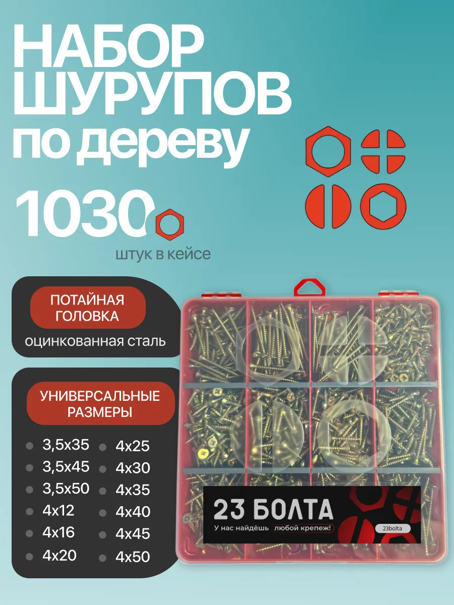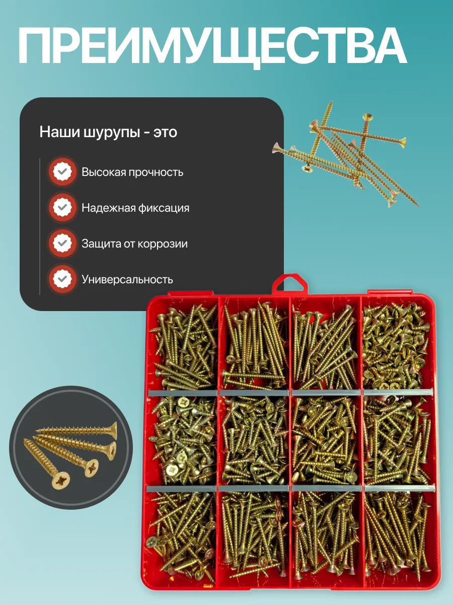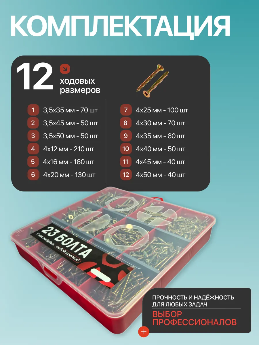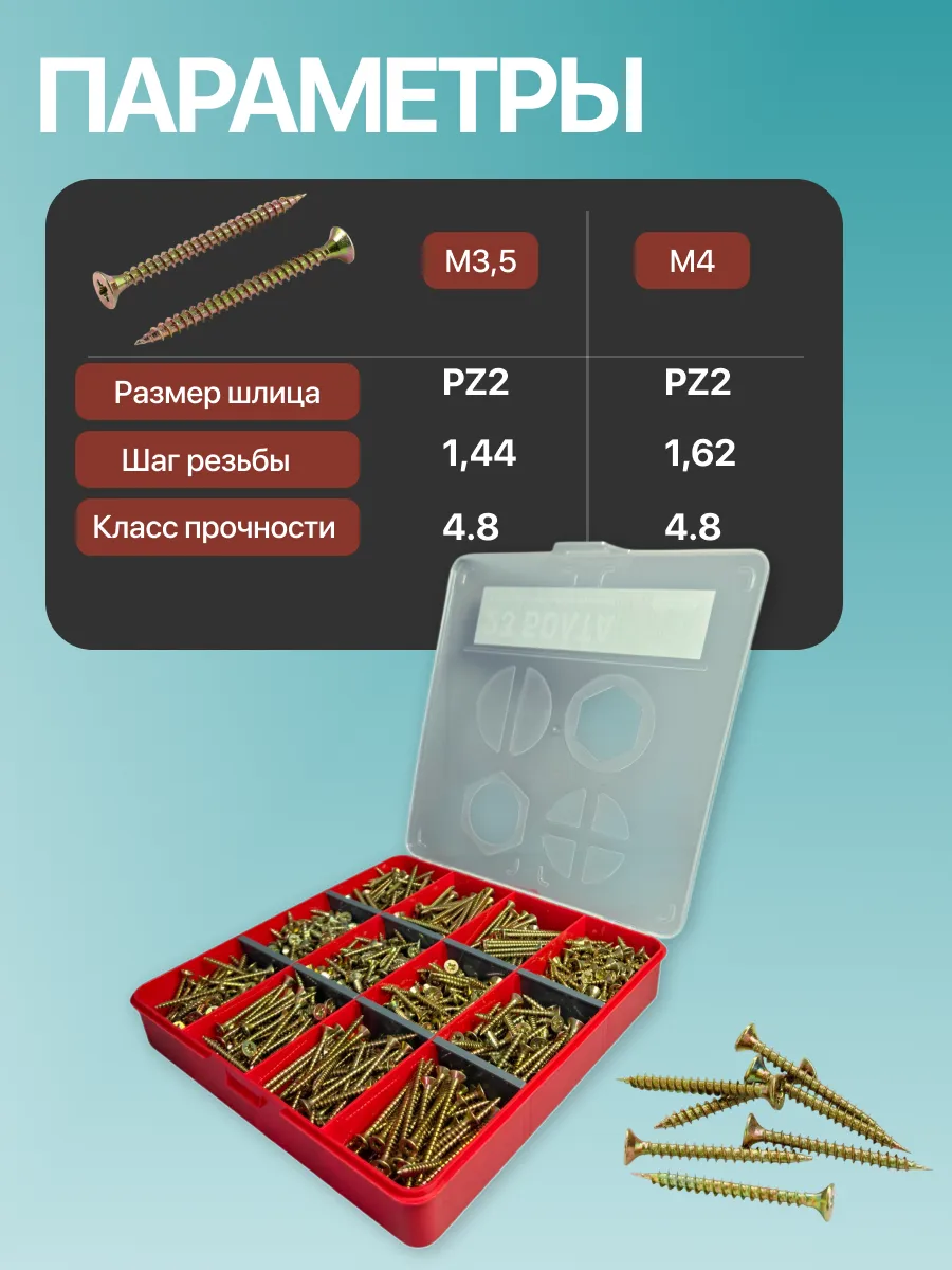 Саморезы шурупы по дереву М3,5 М4 ЖЦ в органайзере НАБОР 1