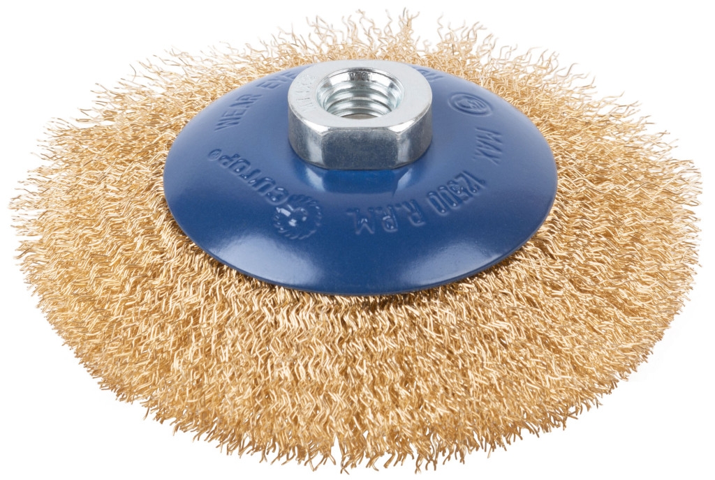 Щетка для УШМ "тарелка", латунир.витая проволока 0,3мм, М14 CUTOP Profi